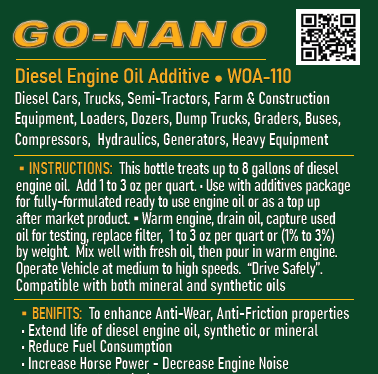 2. Go-Nano Diesel Engine Oil Top-up - Order 1 Quart - Treats 8 Gallons of Diesel Oil + USPS Flat Rate